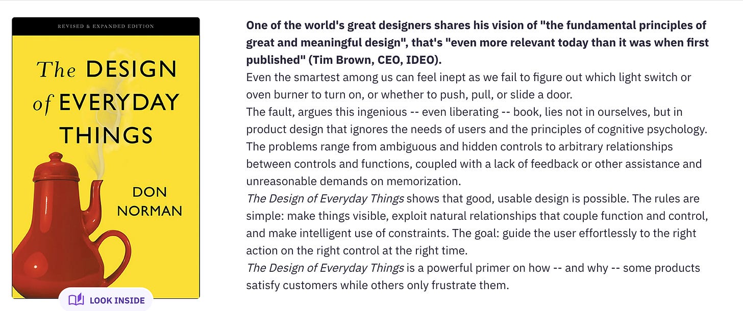 I read The Design of Everyday Things by Don Norman and loved learning about the history and design choices that go into objects we barely notice (like light switches and doors). It was originally published in 1988 and it’s wild to hear his accurate predictions of the technology to come. I’ve been learning UX design and this book is a classic for understanding the fundamentals.